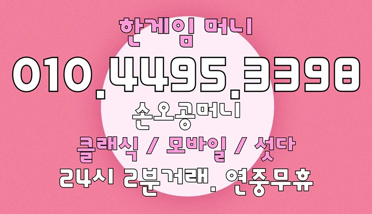 ÇѰÔÀÓ¸Ó´Ï»óÀ̶õ ÇѰÔÀÓ ³»¿¡¼­ »ç¿ëÇÏ´Â °ÔÀӸӴϸ¦ ¾ÈÀüÇÏ°Ô °Å·¡ÇÒ ¼ö ÀÖ´Â ¼­ºñ½ºÀÔ´Ï´Ù. #ÇѰÔÀÓ¸Ó´Ï»ó¾ÈÀü°Å·¡¸¦ º¸ÀåÇÏ´Â ¼Õ¿À°ø¸Ó´Ï(ÀüÈ­¹øÈ£: 010-4495-3398)´Â °í°´´Ô²² ½Å·Ú¹Þ´Â #ÇѰÔÀÓ¸Ó´Ï»óÃßõ ¾÷üÀÔ´Ï´Ù.