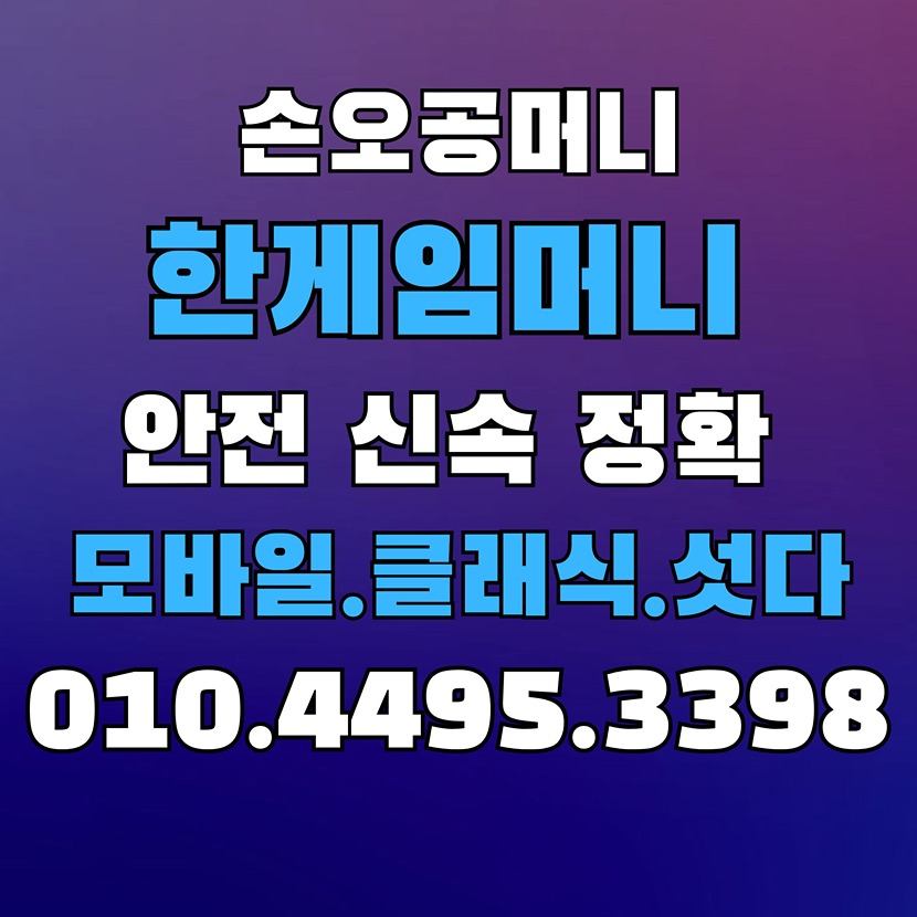 A: **¼Õ¿À°ø¸Ó´Ï (010-4495-3398)**´Â #ÇѰÔÀÓ¸Ó´Ï»óÀԱݺü¸¥°÷ À¸·Î À¯¸íÇϸç, ¸ðµç °Å·¡¸¦ ½Ç½Ã°£À¸·Î ó¸®ÇÕ´Ï´Ù.